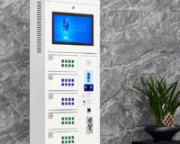Stazione di ricarica rapida e di sicurezza, per Smartphone, Tablet, Sigarette elettroniche, ecc…Caratteristiche :-ricarica tutte le tipologie di Smartphone-è alimentato a corrente da 220 V-può essere posizionato a muro oppure su un apposito carrello con ruote-ha una gettoniera per il pagamento del servizio, con monete oppure programmabile anche Free-può avere anche con Video LCD da 22 pollici-ha un Touch Screen per l’utilizzo del servizio di ricarica, molto semplice da usare, con indicazioni anche vocali e/o descritte sul pannello luminoso a LED.Per ulteriori informazioni :